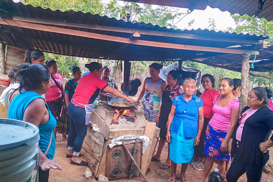 En esta ocasión estuvieron en Cooperativa Kachoc, capacitando a un grupo de mujeres en la elaboración de chile relleno y fresco de carambola.