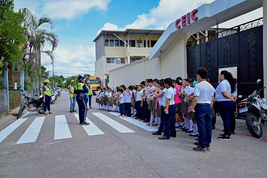 “Con el objetivo de fomentar una cultura vial más segura, la Policía Municipal de Tránsito de Poptún y Servidores Cívicos han implementado un proyecto de señalización y educación vial en las inmediaciones de los diferentes establecimientos educativos.